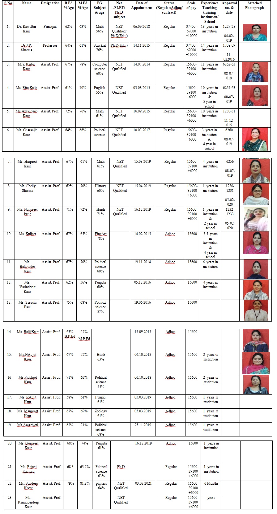 Faculty List of M.Ed/B.Ed/D.El.Ed